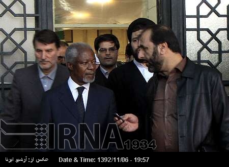 Annan arrived in Tehran early on Sunday for a three-day visit to hold various meetings with senior Iranian officials on the latest developments in the region and the world.