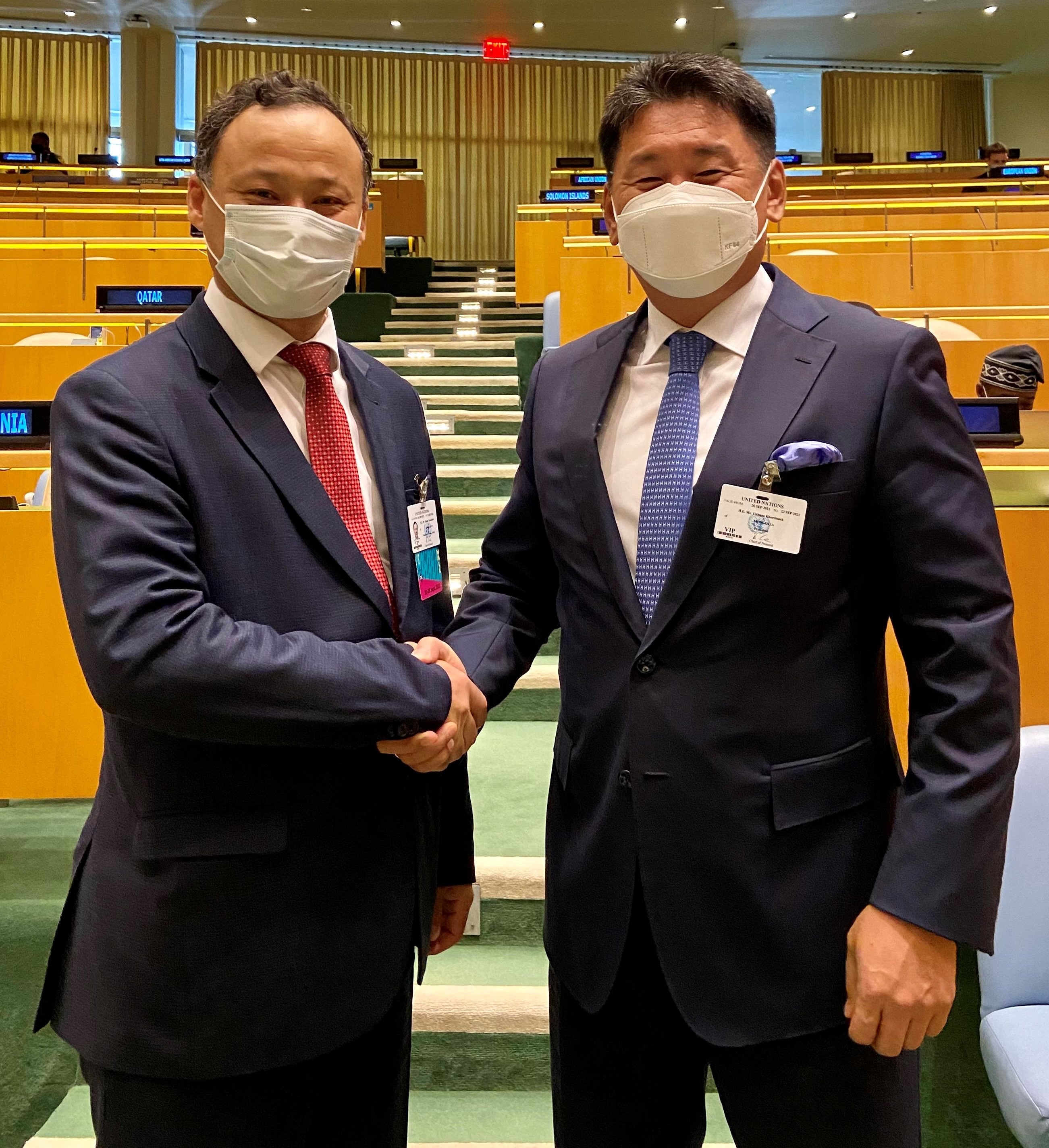 Bishkek, Sept. 24, 2021 . / Kabar / . Minister of Foreign Affairs of Kyrgyzstan Ruslan Kazakbaev met in New York with President of Mongolia Ukhnaagiin Khürelsükh and Foreign Minister Batmunkh Battsetseg. The meeting took place on the sidelines of the 76th session of the UN General Assembly, the press service of the Kyrgyz Foreign Ministry reported. Foreign Minister Kazakbaev congratulated the Mongolian president on election as head of the friendly state and conveyed best wishes from Kyrgyz leader Sadyr Zhaparov. "In addition, the sides noted the importance of further strengthening bilateral cooperation," the report said. The Kyrgyz side expressed gratitude for upgrading the status of the Consulate General of Mongolia in Kyrgyzstan to the status of the Embassy of Mongolia with a residence in Bishkek, and expressed readiness to consider opening a diplomatic mission in Ulaanbaatar in the near future. In conclusion, Kyrgyz Foreign Minister Kazakbaev invited the Mongolian counterpart to pay an official visit to Kyrgyzstan.