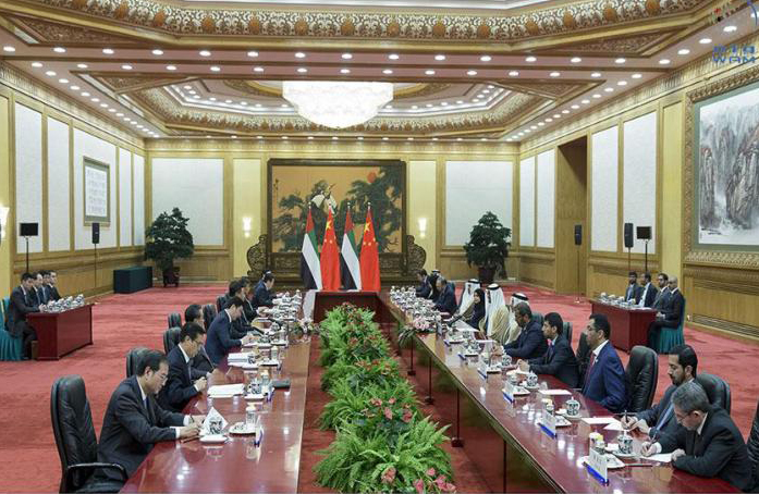The Crown Prince of Abu Dhabi noted that China, with its significant regional and global impact and its positive and constructive role in safeguarding the security and peace and stability in the international arena, could play a vital and balanced role in finding appropriate solutions and settlements to many issues and crises in the Middle East, in cooperation with competent regional and international powers.
