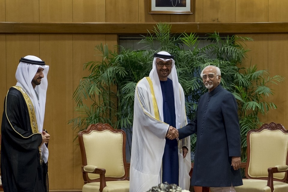NEW DELHI, 12th February, 2016 (WAM) -- His Highness Sheikh Mohamed bin Zayed Al Nahyan, the Crown Prince of Abu Dhabi and Deputy Supreme Commander of the UAE Armed Forces, has also met with the Indian Vice President Mohammed Hamid Ansari, where he discussed friendly ties and cooperation between the UAE and India as well as ways to promote them in order to achieve common interests.