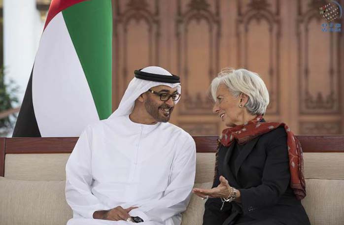 ABU DHABI, 23rd February, 2016 (WAM) – His Highness Sheikh Mohamed bin Zayed Al Nahyan, Crown Prince of Abu Dhabi and Deputy Supreme Commander of the UAE Armed Forces, yesterday received at his Majlis in Al Bahr Palace, the visiting International Monetary Fund (IMF) Managing Director, Christine Lagarde, and her accompanying delegation. Sheikh Mohamed welcomed Lagarde and discussed with her bilateral relations between the UAE and the IMF as well as ways to enhance them. Lagarde spoke about the role played by the IMF to enhance the global economy and follow-up steps taken in some member countries to achieve the necessary economic and financial stability for growth as well as it role played in supporting countries to address their economic issues. During the meeting, Sheikh Mohamed and Lagarde exchanged views on a number of economic and development issues and the latest developments in the global economy as well as ways to address them, which would contribute to achieving development and stability in the region and the world. – Emirates News Agency, WAM –http://www.wam.ae/en/news/emirates/1395291924603.html