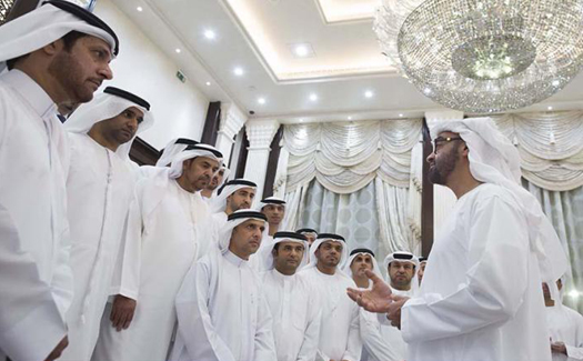In the presence of a group of stakeholders, supporters and media representatives, Sheikh Mohamed and his guests exchanged greetings on the occasion of the Holy Month of Ramadan, praying to Allah to return it with further progress, glory and prosperity for the U.A.E. leadership and people.