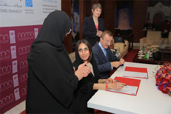 SHARJAH, 22nd March 2016 (WAM) --- Sheikha Jawaher bint Mohammed Al Qasimi, wife of H.H. Dr. Sheikh Sultan bin Mohammed Al Qasimi, Supreme Council Member and Ruler of Sharjah, and Chairperson of NAMA Women Advancement Establishment (NAMA), has witnessed the signing of a Memorandum of Understanding between NAMA and the United Nations Development Programme. The document forms the basis of a mutual agreement to concentrate efforts to expand women’s economic opportunities and promote their inclusion and participation in the job market, with special attention paid to women who have pressing family responsibilities. The MoU was signed by Ameera BinKaram, Deputy Chairperson of NAMA and Chairperson of the Sharjah Business Women Council and Mr Frode Mooring, UNDP Resident Representative in the UAE, in the presence of UNDP Administrator, Helen Clark, on the sidelines of the International Government Communication Forum, which got underway in Sharjah yesterday (Sunday). Highlighting the importance of the MoU between NAMA and UNDP, Her Highness Sheikha Jawaher Al Qasimi said, "We put the advancement of women's role in economic, social and professional walks of life at the top of our agenda. Our main goal is to go beyond the scope of supporting and empowering women to a more focused intent for women to become influential key members of society who participate in all sectors." She added "The signing of this MoU with the United Nations Development Programme aims to increase our ability to reach broader categories of women, not only on the local level, but also across the region. It represents support from one of the most important subsidiary bodies of the world's largest UN organisation and has been made possible thanks to our wise leadership's tireless efforts to help advance our cause." Sheikha Jawaher continued "All credit should go to H.H. Sheikha Fatima bint Mubarak, Chairwoman of the General Women's Union, Supreme President of the Family Development Foundation, and Head of the Supreme Council for Motherhood and Childhood, Mother of the Nation, for the substantial support she gives to women and her continuous drive to elevate their status in society." Frode Mooring, UNDP Resident Representative in the UAE, said the signing of this MoU falls within the UNDP's interest in supporting women and developing their abilities and potential. He added: "We are fortunate to collaborate today with an organisation that shares our global commitment and belief that nations can only move forward when all their citizens have an equal opportunity to succeed," he continued "Research and experience have shown that empowering women is among the most effective ways of improving a nation’s wellbeing, and Emirati women are actively playing their part in the continuing advancement of the UAE." The MoU between NAMA and UNDP stipulates that both parties will collaborate in encouraging the passing of policies and legislation necessary to elevate women and to pursue programmes that support gender integration in all sectors. UNDP will provide technical support for initiatives, programmes and projects implemented by NAMA. The collaboration will include activities at both the national and regional level that can be measured and tracked to advance women’s rights, with a priority given to initiatives that are geared towards women who are the sole bread winners for their families. NAMA was launched by Sheikha Jawaher bint Mohammed Al Qasimi, who is also the royal patron of the Sharjah Business Women Council, in December 2015, following a decree by the Ruler of Sharjah and with the grace of Sheikha Fatima bint Mubarak bint Mubarak. Through its initiatives and subsidiaries, NAMA is dedicated to activating and elevating women's role and enhancing their opportunities in the economic, professional and social sectors. In doing so, it is mandated to launch, manage and supervise programmes to develop women in the country, the region and internationally. To achieve its goals, NAMA forges collaboration and partnership agreements with competent local, regional and international bodies. UNDP partners with people at all levels of society to help build nations that can withstand crises, and drive and sustain the kind of growth that improves the quality of life for everyone. On the ground in more than 170 countries and territories, UNDP offers global perspectives and local insights to help empower lives and build resilient nations. – Emirates News Agency, WAM - http://www.wam.ae/en/news/emirates/1395293187477.html