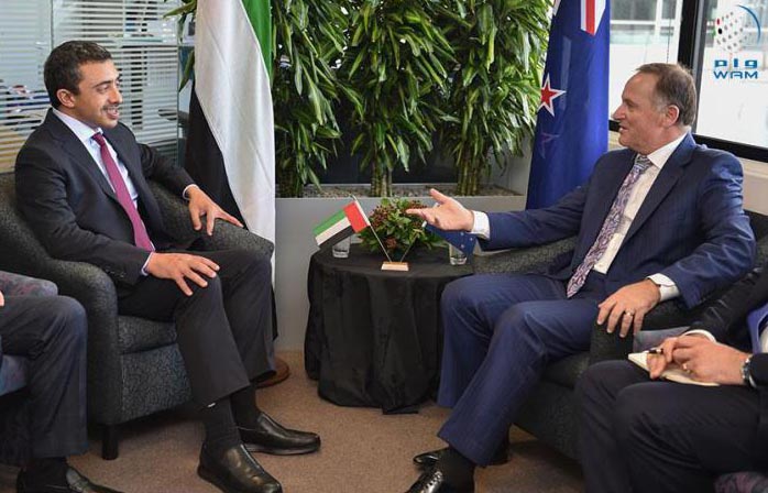 AUCKLAND, 20th March, 2016 (WAM) -- John Key, Prime Minister of New Zealand received H.H. Sheikh Abdullah bin Zayed Al Nahyan, Minister of Foreign Affairs and International Cooperation.