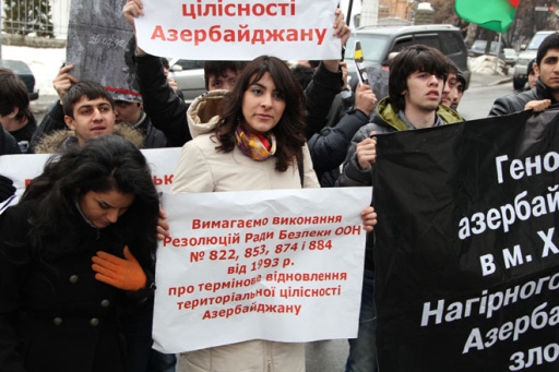 There was a march from the center of Kiev to the UN and OSCE representative offices under the slogans: "Armenian invaders, conducting the occupation policy over the centuries against Azerbaijan, will answer to history," "The most ruthless tragedy of the twentieth century - the genocide in Khojaly - must be recognized as the world community".