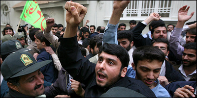 The demonstrators chanted “Down with the United States,” “Down with Israel,” and other slogans.