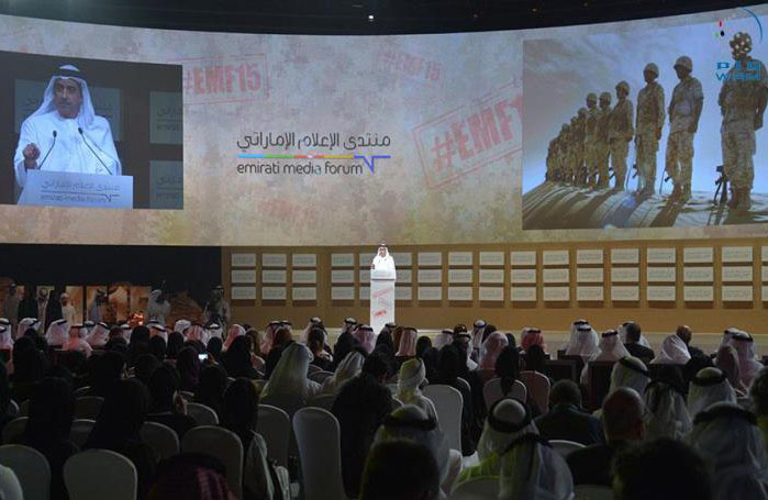 The full text of the speech: "I would like to take the opportunity to welcome the esteemed guests attending the third Emirati Media Forum; guests of Dubai, the unparalleled Emirati city, which has forged ahead to become a beacon of modernity, and a hub of innovation and development in various fields. All of which have been made possible by the grace of Allah Almighty, and by the unstinting efforts exerted by the wise leadership, led by President His Highness Sheikh Khalifa bin Zayed Al Nahyan.