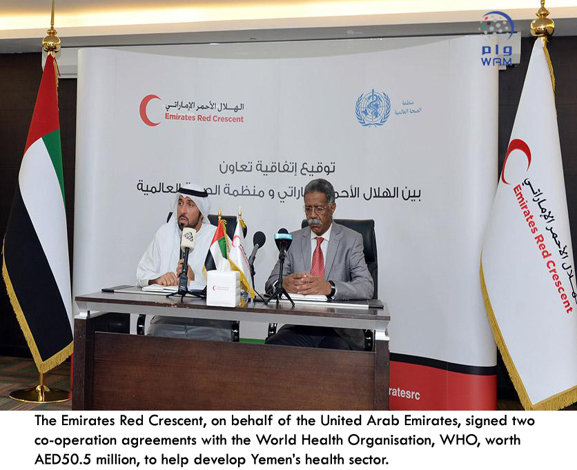 The Emirates Red Crescent, on behalf of the United Arab Emirates (UAE), signed two co-operation agreements with the World Health Organisation (WHO) worth AED50.5 million, aimed at implementing new healthcare and humanitarian projects in Yemen.