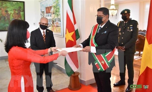 Hanoi, February 17 (VNA) – Vietnamese Ambassador to Brazil and Suriname Pham Thi Kim Hoa has vowed to do her utmost to develop good friendship and cooperation between Vietnam and Suriname at a meeting with President of Suriname Chandrikapersad Santokhi following the ambassador's presentation of credentials.