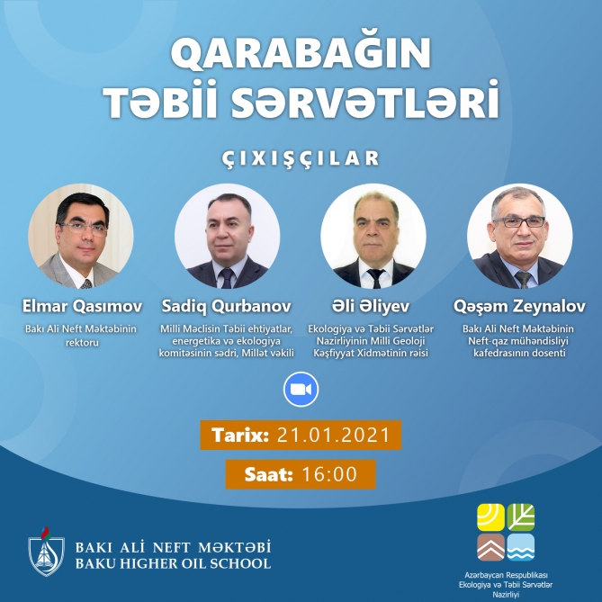 Baku Higher Oil School, jointly with the Ministry of Ecology and Natural Resources, will hold a webinar on the topic "Natural Resources of Karabakh".