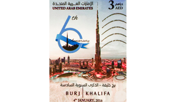 DUBAI, 25th January, 2016 (WAM) -- Burj Khalifa, the world’s tallest building, has marked its sixth anniversary by releasing its first dedicated postage stamp. The commemorative stamp, launched in partnership with Emirates Post, depicts Burj Khalifa rising majestically above Downtown Dubai at sunset in all its resplendent glory.