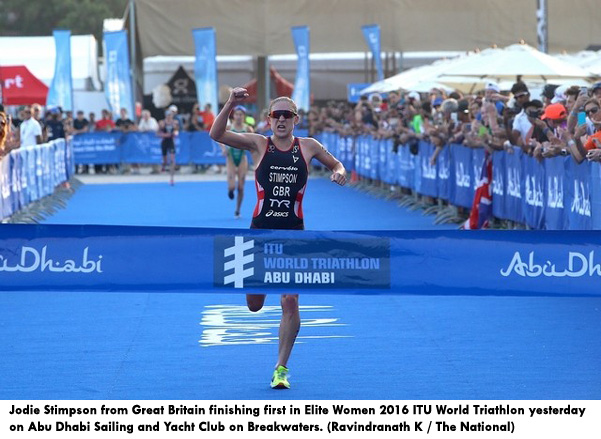 ABU DHABI, 6th March 2016 (WAM) --- Spain's Mario Mola and Great Britain's Jodie Stimpson were crowned the first World Triathlon Series race champions after winning in Abu Dhabi on Saturday. The par are among of 130 of the world’s fastest triathletes striving to earn the first world rankings points of the year as they begin their final preparations for this summer’s Rio de Janeiro Olympic Games. Despite serving a ten¬-second time penalty, Mola was able to seize his back¬-to-back Abu Dhabi title, while Stimpson claimed her first WTS victory since the 2014 season. Mola won last year’s race in Abu Dhabi over the sprint distance and repeated that performance over the Olympic distance at the capital’s Corniche Breakwater. Claiming her first WTS victory since 2014, Great Britain’s Jodie Stimpson finally earned her way back to the top of the podium by winning the first race of the season at the 2016 ITU World Triathlon Abu Dhabi. The next leg of the International Triathlon Union's World Triathlon Series will be staged in Gold Coast, Australia, from 9th-10th April 2016, while the third will be staged in Cape Town, South African from 23th-24th April and the final leg in Yokohama, Japan, from 14th-15th May. ITU World Triathlon Abu Dhabi top five results: :: Men’s Elite 1 Mario Mola (ESP) 1.46.39 2 Richard Murray (RSA) 1.46.54 3 Joao Silva (POR) 1.47.08 4 Fernando Alarza (ESP) 1.47.17 5 Crisanto Grajales (MEX) 1.47.27 :: Women’s Elite 1 Jodie Stimpson (GBR) 1.56.10 2 Ashleigh Gentle (AUS) 1.56.19 3 Helen Jenkins (GBR) 1.56.26 4 Flora Duffy (BER) 1.56.44 5 Renee Tomlin (USA) 1.57.02. – Emirates News Agency, WAM - http://www.wam.ae/en/news/sports/1395292436923.html