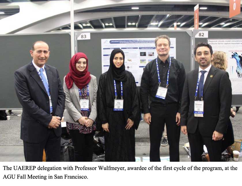 Speaking on their second participation at the AGU Fall Meeting, Alya Al Mazroui said, "We were honoured to represent the UAEREP and share our ideas and achievements with such a distinguished group of delegates. We believe that the innovative research being carried out by many of the scientists we met could significantly compliment the original and creative ideas currently being explored through our program. We very much welcome the interest in and support for the UAE initiative expressed by a large number of participants at the meeting. We hope to maintain this momentum and receive even more high-quality submissions from the United States and beyond in our upcoming third cycle."