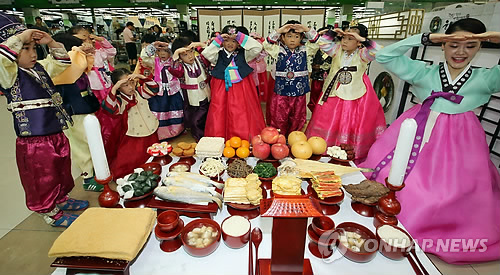 Children learn Korean tradition Children learn how to make a traditional Korean bow at a discount store in southern Seoul on Aug. 28, 2014. (Yonhap) (END)