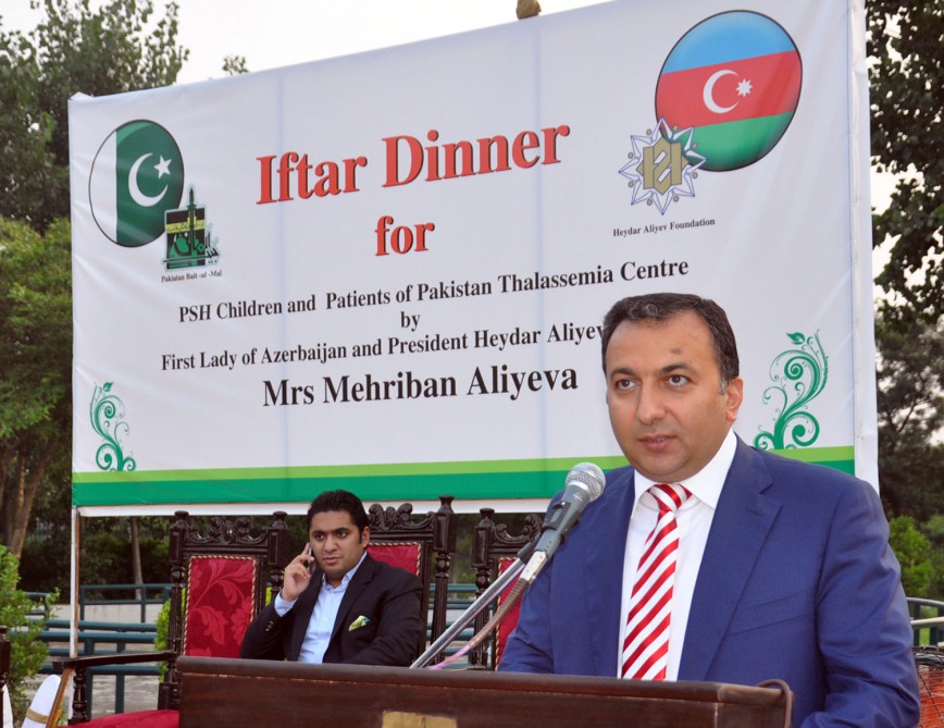 An Iftar dinner has been hosted for the patients of Pakistan Thalassemia Centre and Pakistan Sweet Home Children on behalf of first lady of Azerbaijan, president of the Heydar Aliyev Foundation, goodwill Ambassador of UNESCO and ISESCO Mehriban Aliyeva.