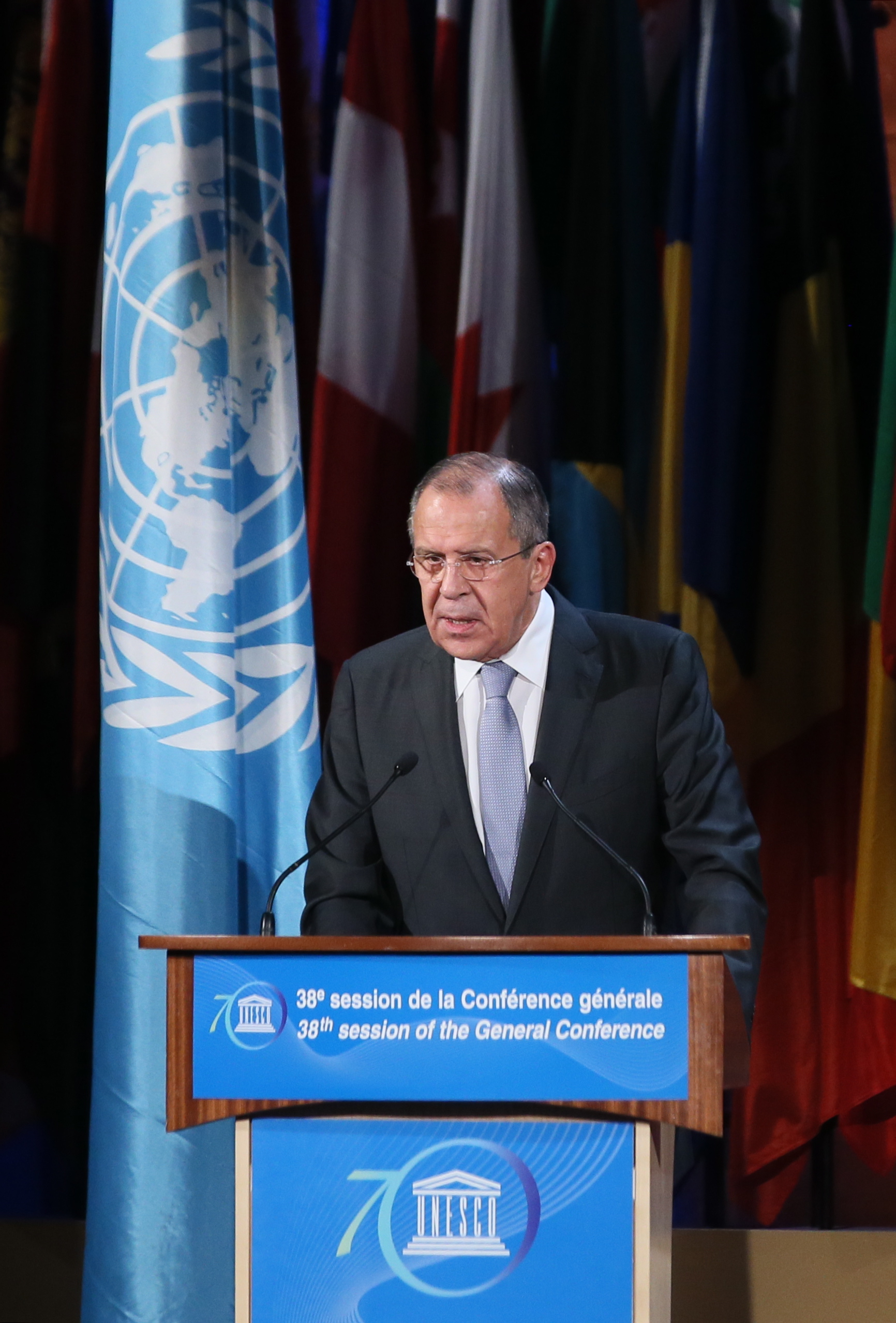 The foreign minister will make a speech today at the general political discussion at the 38th session of UNESCO General Conference. After that, Lavrov will go to Paris to take part in the meeting of the "Normandy Quartet" (Russia, Ukraine, France, Germany).