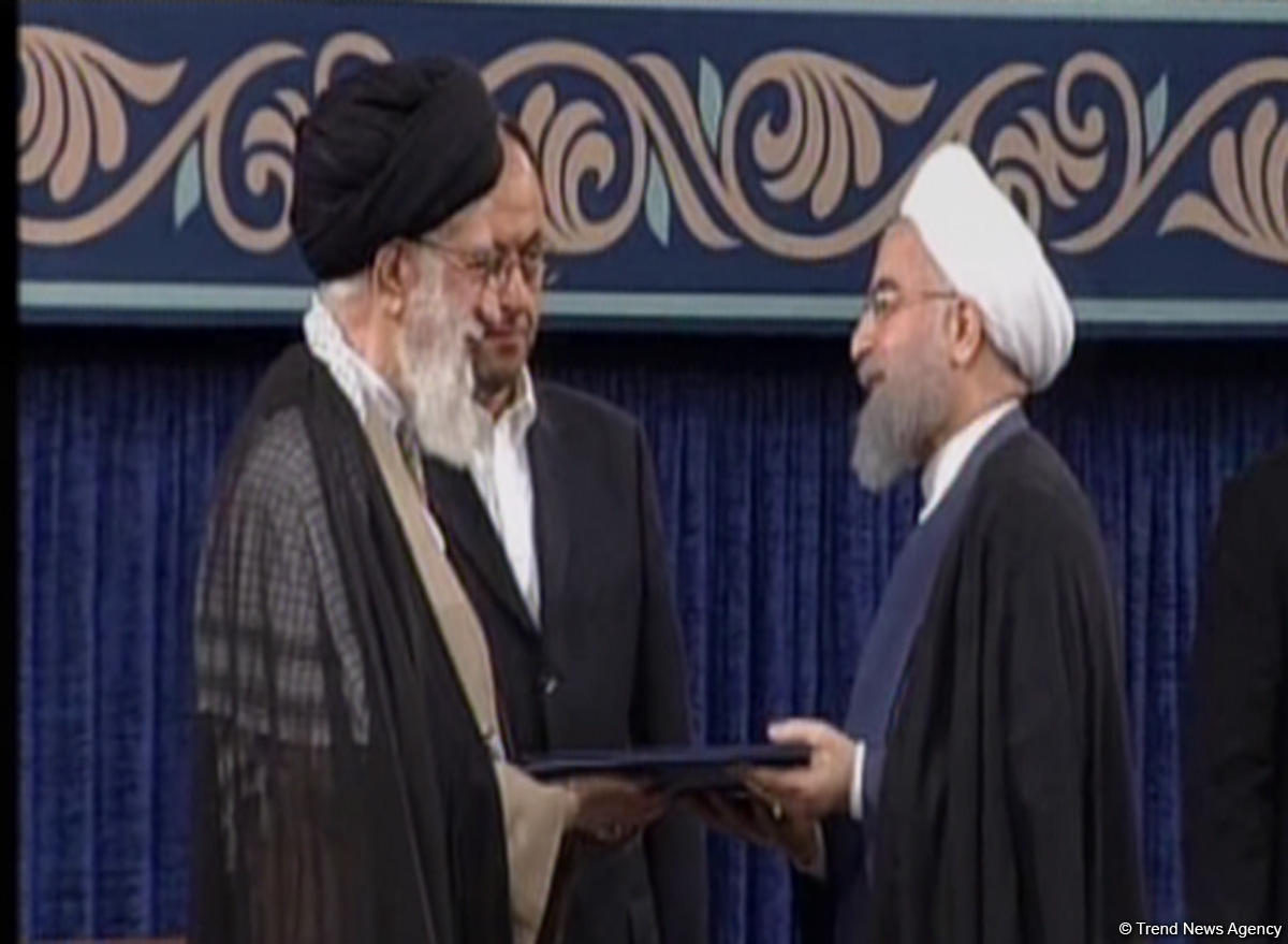 Ayatollah Ali Khamenei gave his endorsement letter to the re-elected President Hassan Rouhani, during the ceremony for his confirmation as the Iranian chief executive, in Tehran on Aug 3, Trend's correspondent reported from the event.
