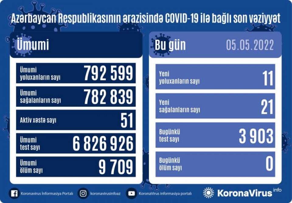 “The overall confirmed cases in Azerbaijan have reached 792,599, with 782,839 recoveries and 9,709 deaths, while treatment of 51 others is underway.