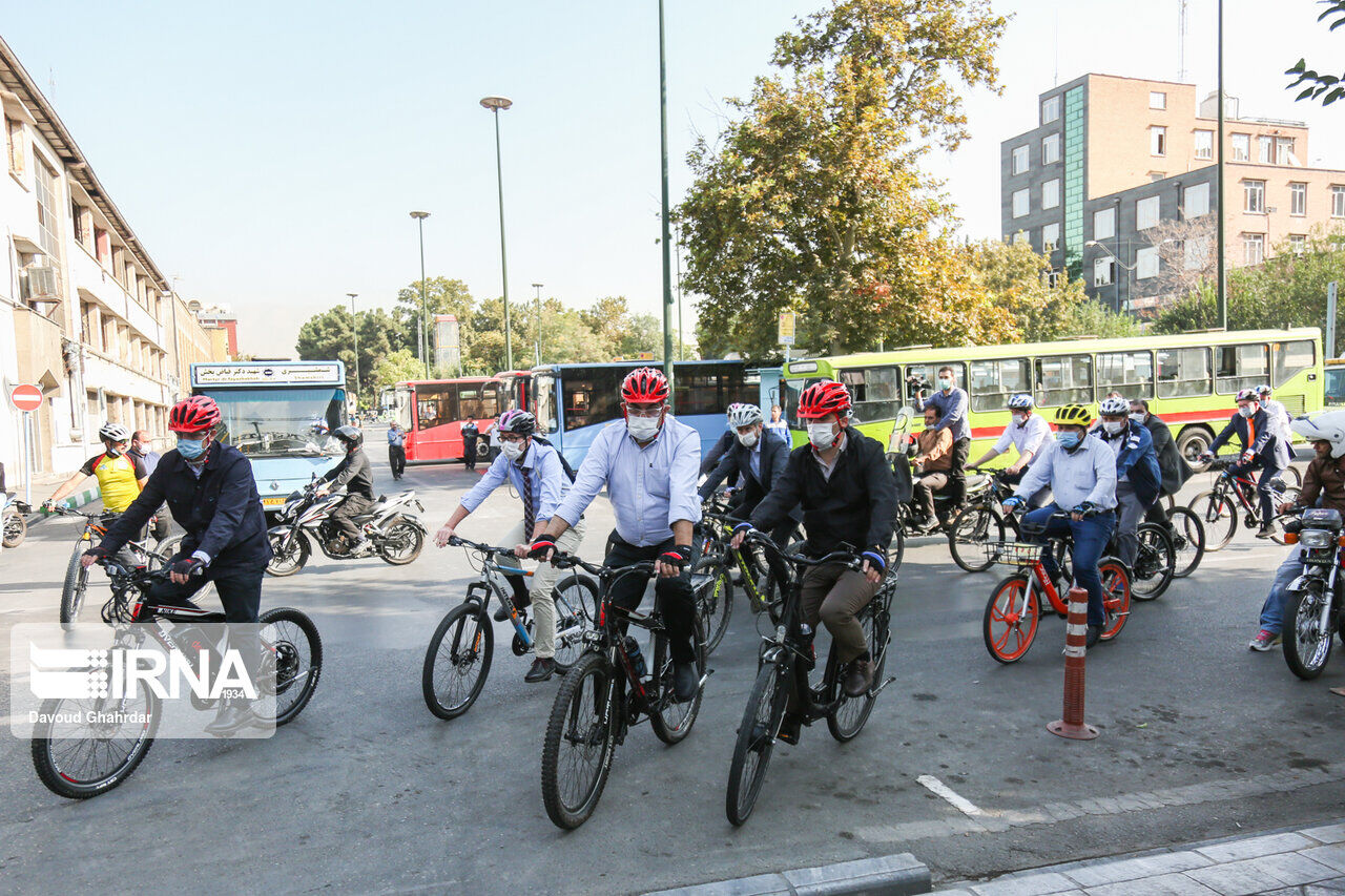 Tehran Mayor Pirouz Hanachi along with French, Danish, Dutch and German ambassadors residing in Iran are pedaling bicycle in Iranian capital's streets to mark World Car Free Day on September 22, 2020. IRNA/Davoud Qahrdar After bicycling, they visited Tehran Peace Museum to honor the International Day of Peace.