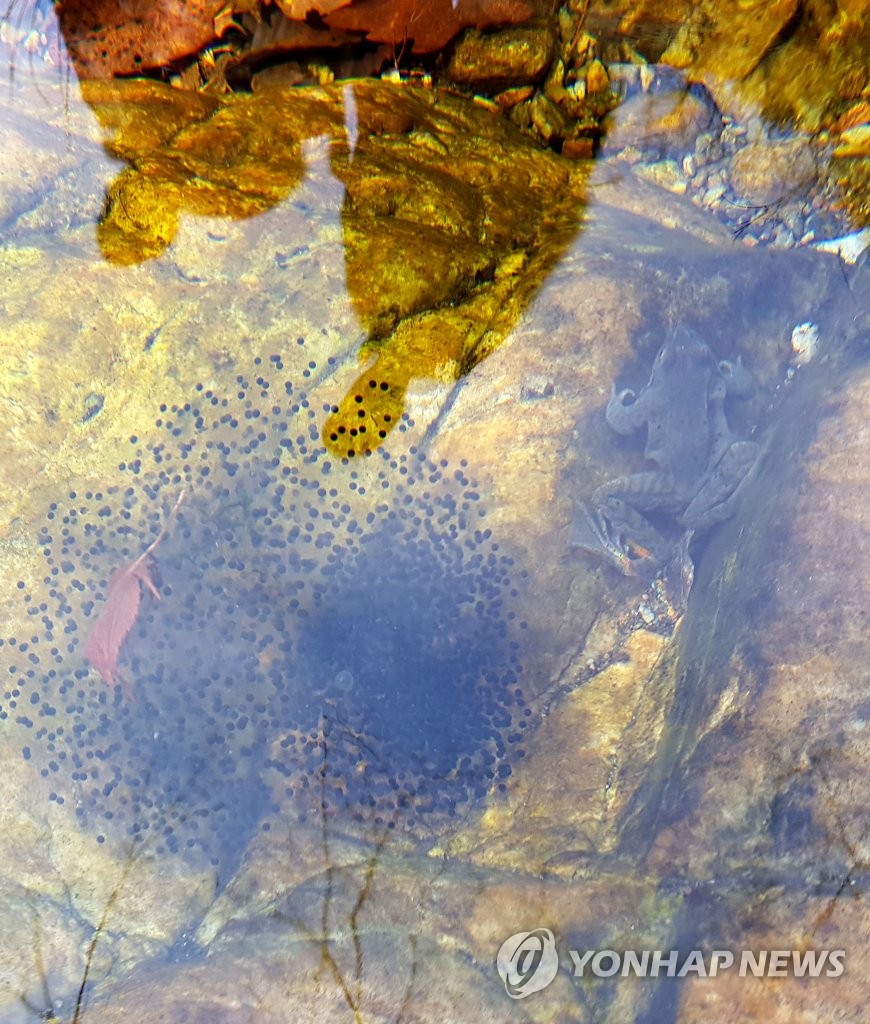 Photo A frog swims around eggs it spawned in a stream on Mount Samak in the city of Chuncheon, northeast of Seoul, on March 9, 2020. (Yonhap) (END) Log in to post comments