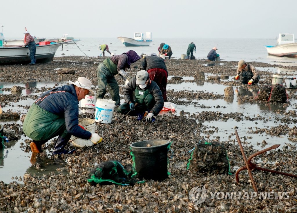 Photo Residents collect oysters at a mud flat in Taean on South Korea's west coast on Nov. 9, 2021, as the country's oyster harvest season is in full swing, in this photo released by the Taean municipality. (PHOTO NOT FOR SALE) (Yonhap) (END) Log in to post comments
