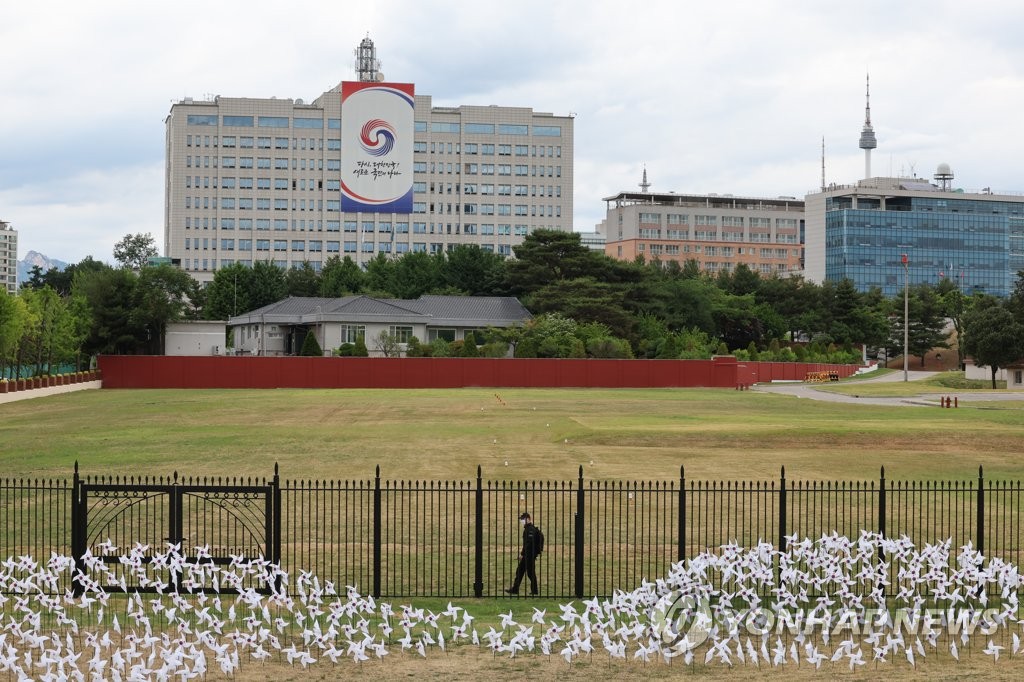 Seen here is the front yard of the new presidential office near Yongsan Park, under construction in Seoul, on June 9, 2022. Some part of the park, formerly used as the headquarters of the U.S. Forces Korea, will be temporarily made public from June 10-19. (Yonhap)