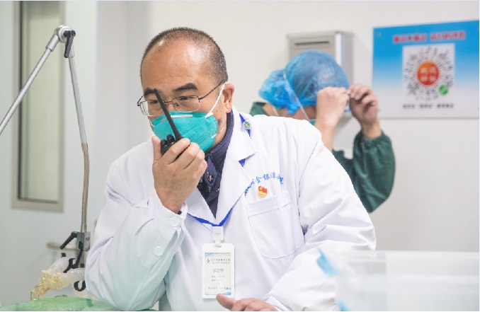 Photo Photo taken on Jan. 27, 2020 shows Zhang Dingyu, president of Wuhan Jinyintan Hospital, coordinates work via an intercom (Photo provided to Xinhua) Log in to post comments