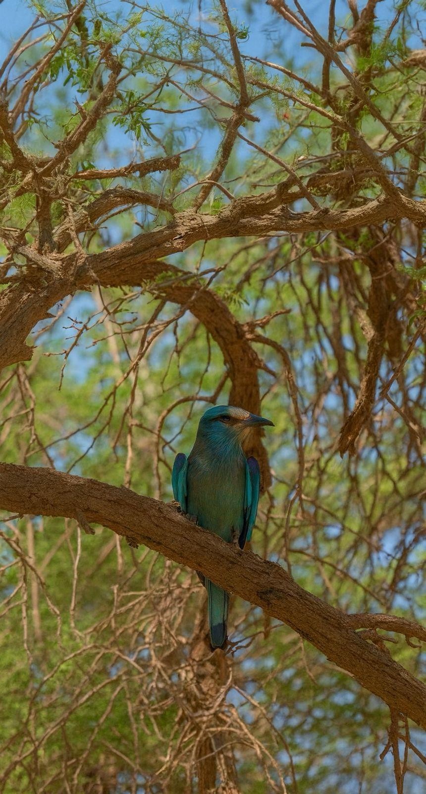 The European roller is among the most beautiful migratory birds that cross the Kingdom twice a year, in both spring and autumn migrations. It is distinguished by its vivid colors, blending light blue and turquoise with touches of brown on its wings, creating a striking appearance that fascinates bird enthusiasts and photographers alike.
