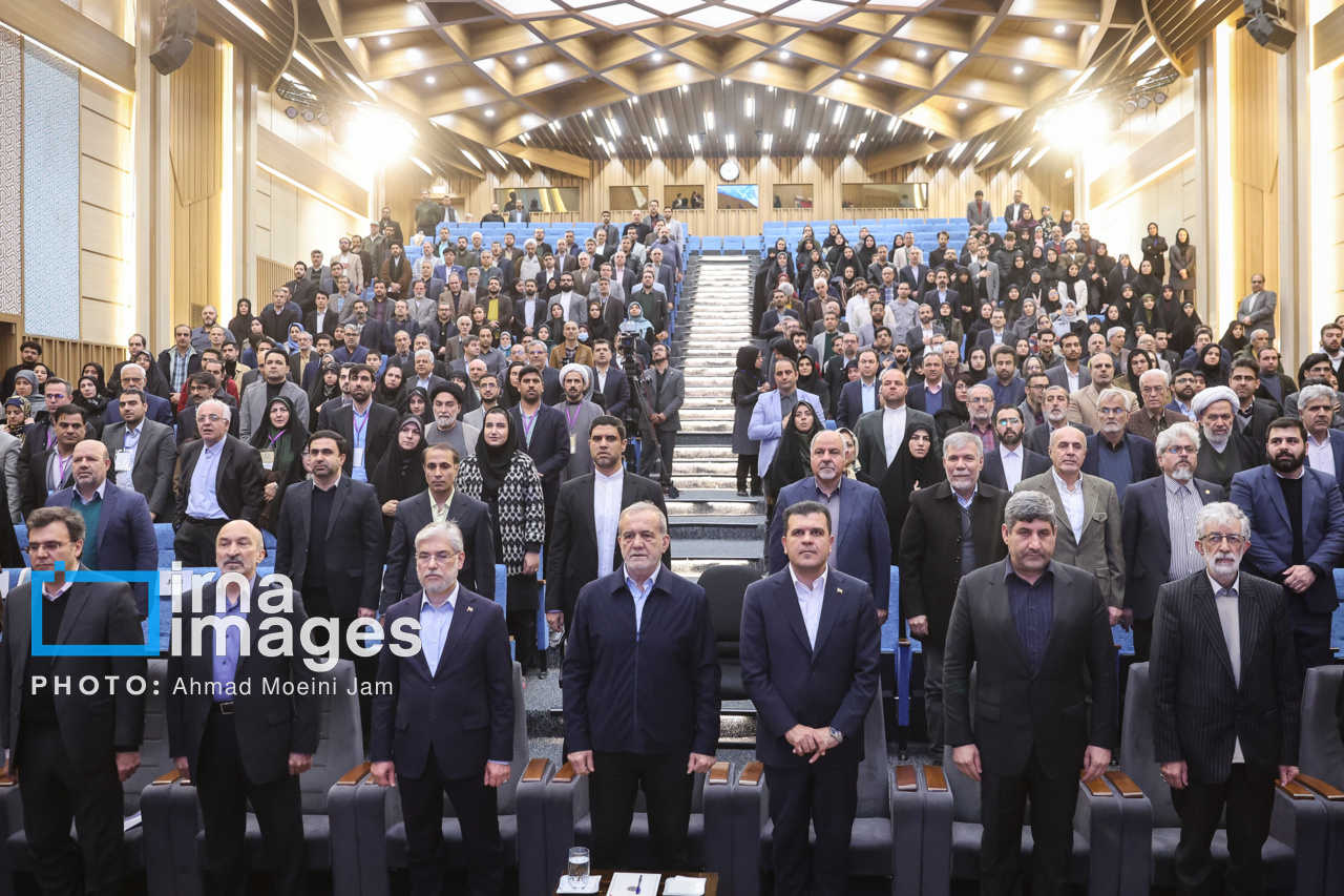 The closing ceremony of the 16th Farabi International Festival dedicated to humanities and Islamic studies took place on February 15, 2026, at Allameh Amini Hall of the University of Tehran. The event was attended by President Masoud Pezeshkian, Minister of Science Hossein Simaei Sarraf, and University of Tehran President Mohammad-Hossein Omid.