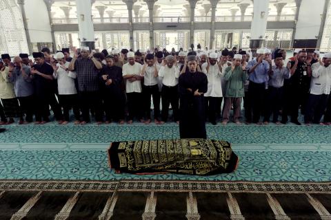 SEPANG, Feb 3 -- Family members and friends of the late Muhammad Aaron Maseri, 22, concluding the prayers when his son remains being prayed at Sultan Abdul Samad Mosque right after they arrived at