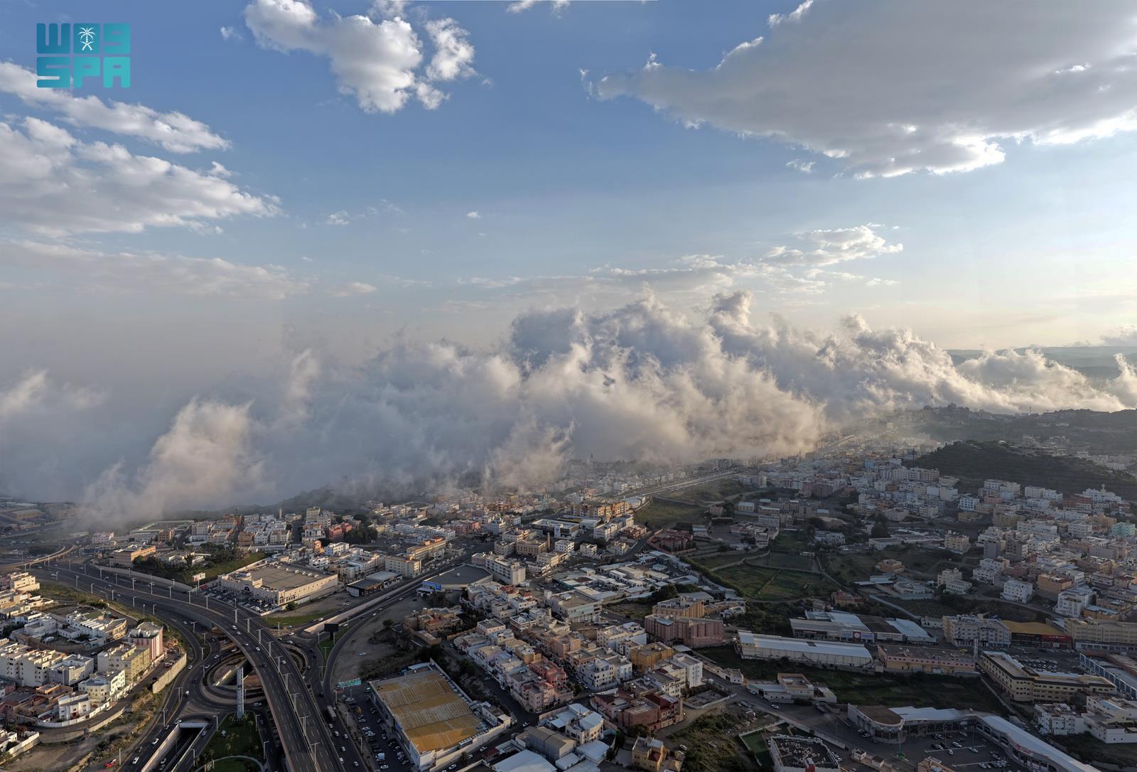 Abha, September 01, 2025, SPA -- The skies over Abha were adorned today with breathtaking natural scenes, as dense clouds poured over the mountain slopes and spread across the city's neighborhoods, announcing the arrival of autumn in Aseer Region.