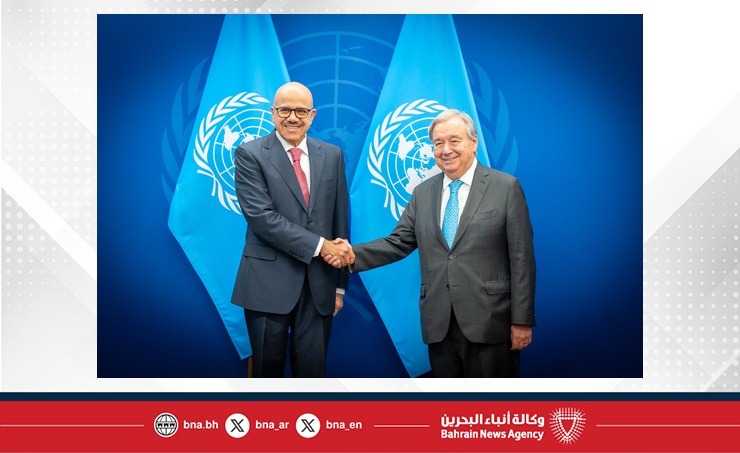 Dr. Al Zayani conveyed the greetings and appreciation of His Majesty King Hamad bin Isa Al Khalifa and His Royal Highness Prince Salman bin Hamad Al Khalifa, the Crown Prince and Prime Minister, to the Secretary General, along with their best wishes for his continued success in advancing international cooperation and achieving the goals of the United Nations in promoting peace, security, and development globally.