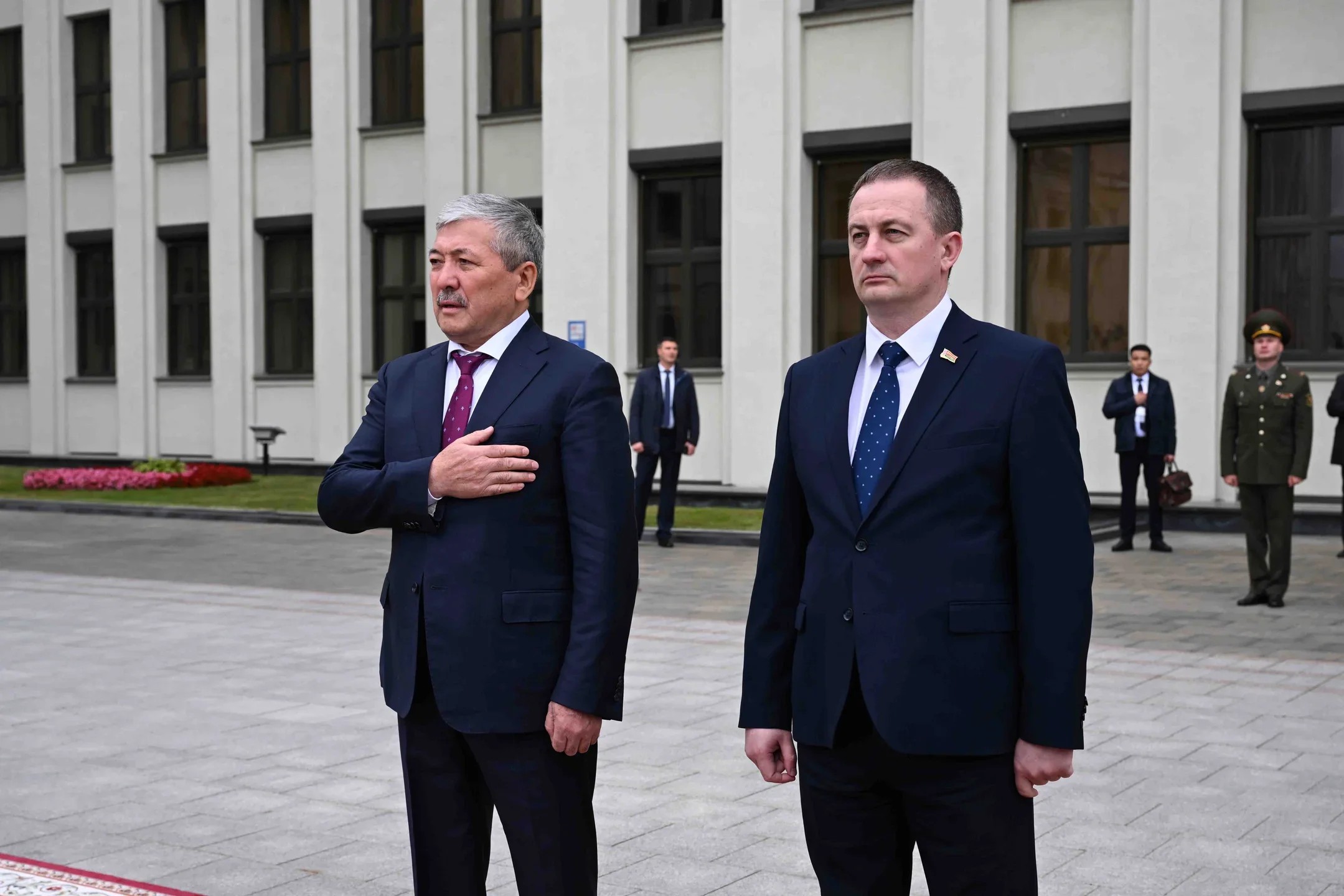 The parties greeted each other, paid respects to the flag, and the national anthems of both countries were played. Adylbek Kasymaliev and Prime Minister Alexander Turchin introduced the members of their official delegations.