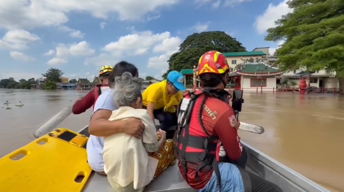Water levels in the Chao Phraya River, Noi River, and tributaries in Ayutthaya are rising by an average of 10 centimeters as the dam releases 2,500 cubic meters per second. The continuous overflow has affected 11 districts and over 43,882 households. The hardest-hit area is Bang Ban district, where floodwaters have reached the second floor of some houses. Rescue teams navigated strong currents to evacuate two elderly sisters, aged 92 and 90, and children to safety.