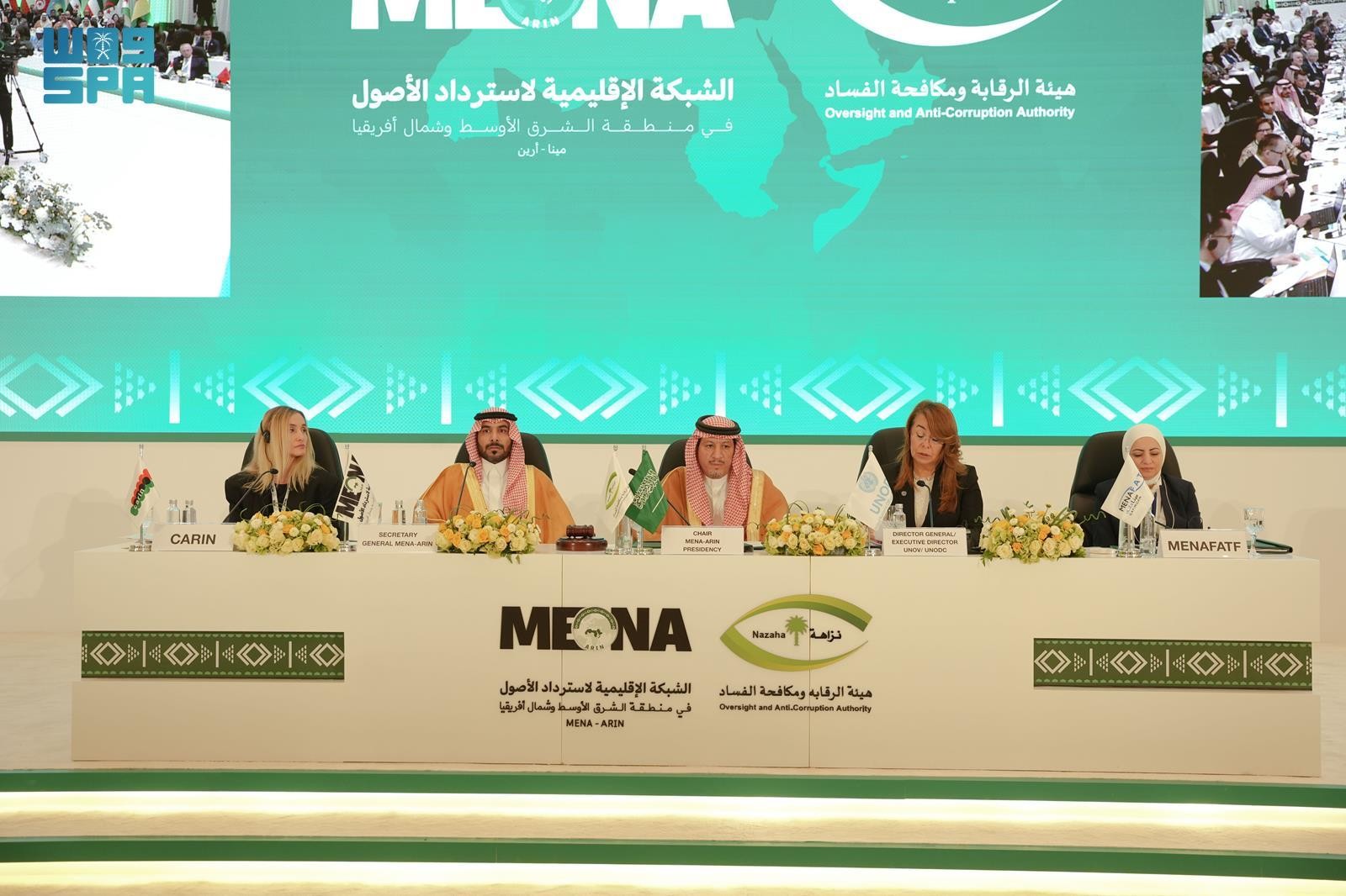Jeddah, October 10, 2025, SPA -- The Kingdom of Saudi Arabia yesterday concluded the first annual general meeting of the Asset Recovery Inter-Agency Network for the Middle East and North Africa (MENA–ARIN) in Jeddah. The meeting, which was held October 8 to 9, was hosted by the Kingdom and represented by the Oversight and Anti-Corruption Authority (Nazaha).