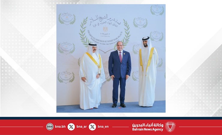 Sharm El Sheikh, Oct. 13 (BNA): His Majesty King Hamad bin Isa Al Khalifa participated in the Sharm El Sheikh Summit for Peace, held to mark the agreement to end the war in Gaza, alongside leaders and heads of state and government. The summit took place in the city of Sharm El Sheikh, Arab Republic of Egypt.