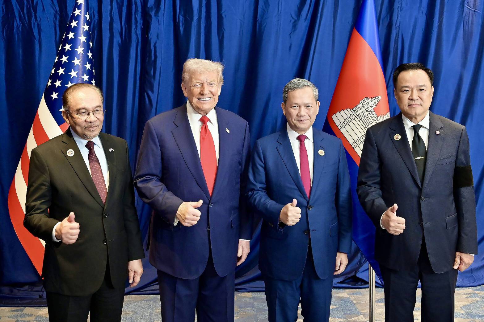 Thai Prime Minister Anutin Charnvirakul and Cambodian Prime Minister Hun Manet formalized the declaration on the outcomes of their meeting in Kuala Lumpur, with U.S. President Donald Trump and Malaysian Prime Minister Anwar Ibrahim witnessing the signing.