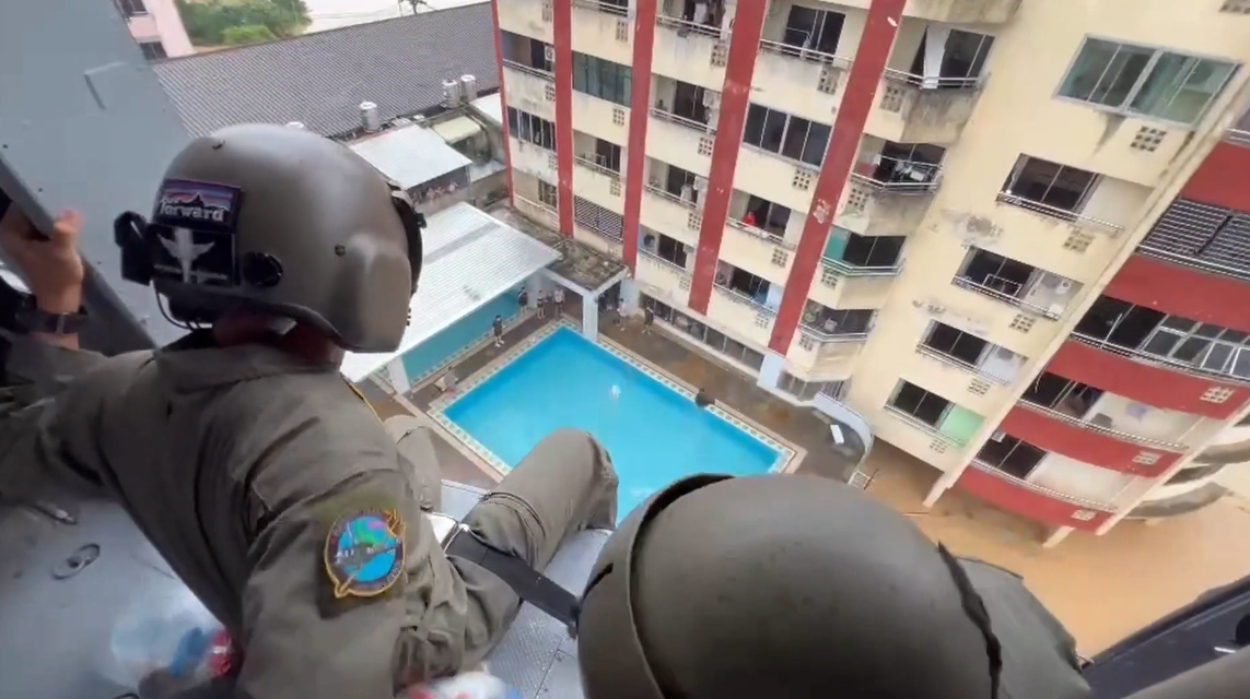 BANGKOK, Nov 27 (TNA) - The Thai military and various civilian aid organizations launched an extensive operation, employing air and naval assets to rescue and provide critical aid to residents trapped by severe floods in Hat Yai district, Songkhla province.