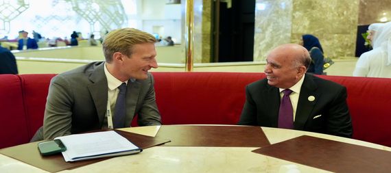 In a statement, the Ministry of Foreign Affairs reported that Deputy Prime Minister, Foreign Minister Fuad Hussein met with Carl Skau, the Deputy Executive Director of the World Food Programme (WFP), on the sidelines of the 23rd Doha Forum.