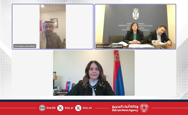 Manama, Dec. 23 (BNA): Hatem Abdulhameed Hatem, Chief of the Organisations at the Ministry of Foreign Affairs, met via videoconference with Marina Ivanović, Director of the Department of the United Nations at the Ministry of Foreign Affairs of the Republic of Serbia, to consult on issues on the UN Security Council agenda, in light of the ongoing preparations for the Kingdom of Bahrain’s non-permanent membership in the Council for the 2026–2027 term.