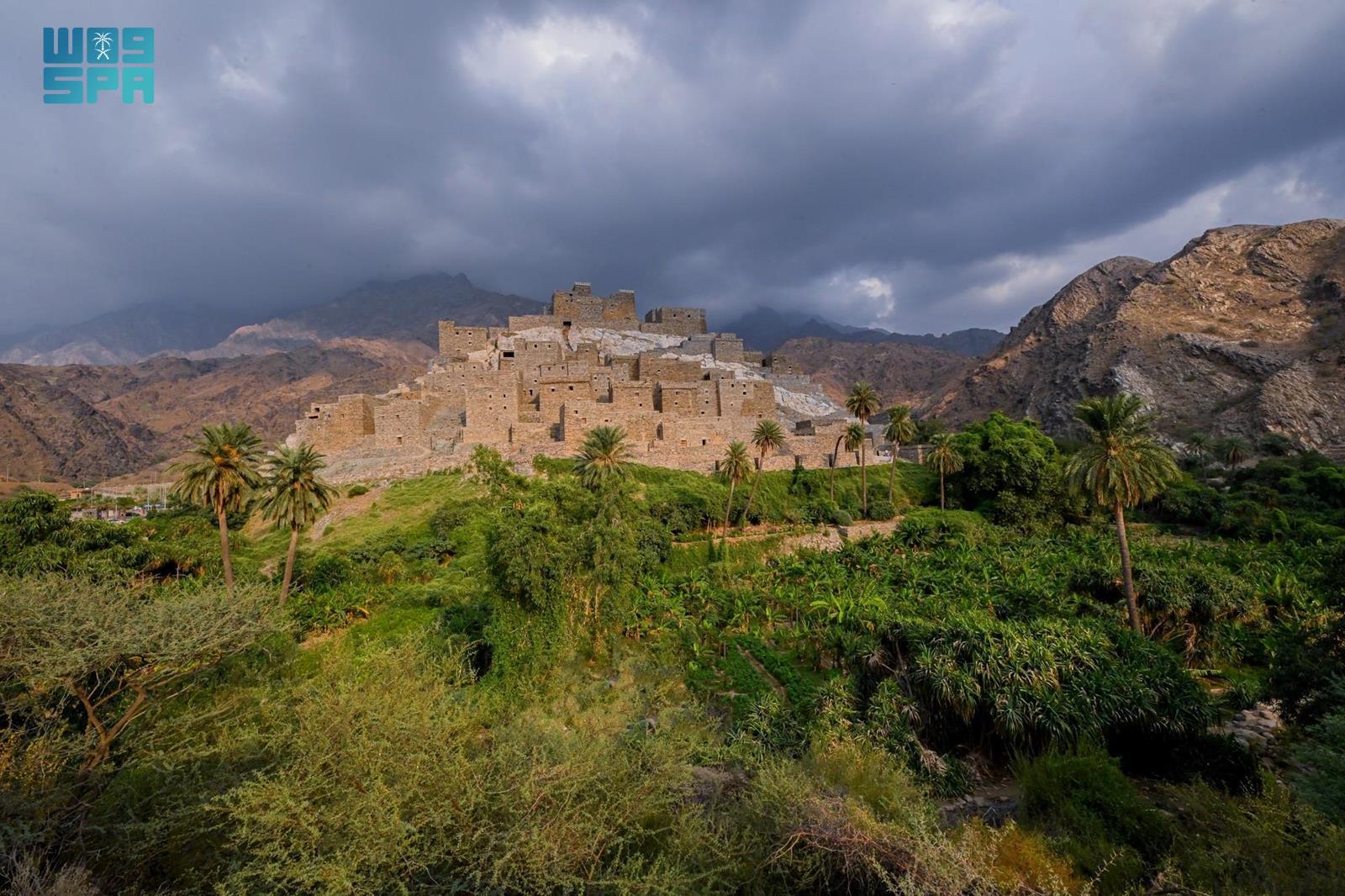 Al-Baha, December 26, 2025, -- The continuous year-round flow of water in the village of Thee Ain, located in Al-Makhwah Governorate, is sustained by an ingenious ancient irrigation system that channels water from a natural spring called Al-Qalla, situated at the village’s highest elevation.