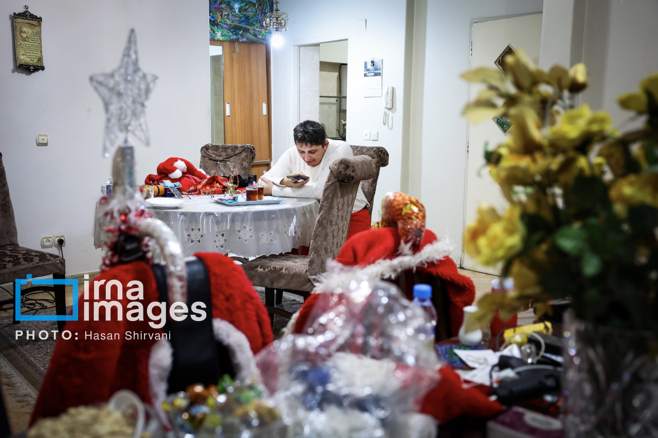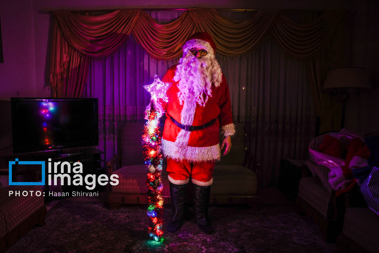 Vanik Ghutoyan, 41, began his work as Santa Claus on Tehran’s Mirzaye Shirazi Street during Christmas 2005 and has since trained eight people for the role. This photo report captures Vanik’s journey from his home as he prepares to take on the role of Santa Claus, to his presence on the street and his interactions with children and passersby in the days leading up to Christmas.